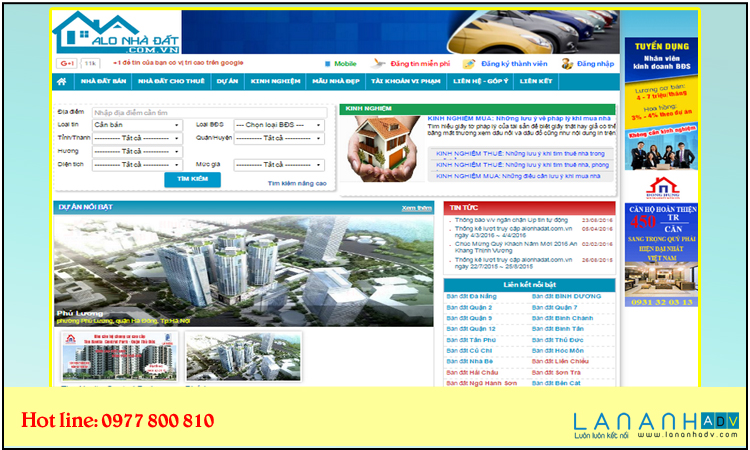 Dưới đây Lan Anh Adv xin tổng hợp những mẫu website bất động sản đẹp để khách hàng có thể tiện tham khảo. Mọi nhu cầu khách hàng vui lòng liên hệ Hotline: 0977.800.810 hoặc 0938.630.616 để được tư vấn cụ thể, tận tình.