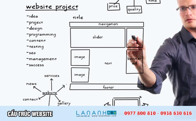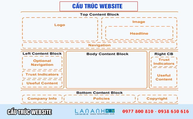 Cấu trúc website hay còn được gọi là bố cục layout website là cách sắp xếp, bố cục các thành phần của trang website và liên kết các nội dung các trang trên web.